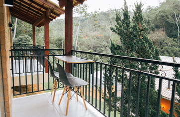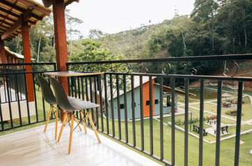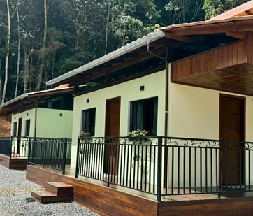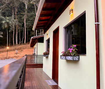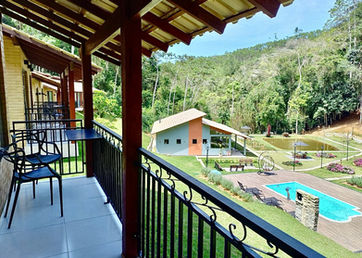 A pousada fica cercada pelos quatro cantos pela exuberância da Mata Atlântica